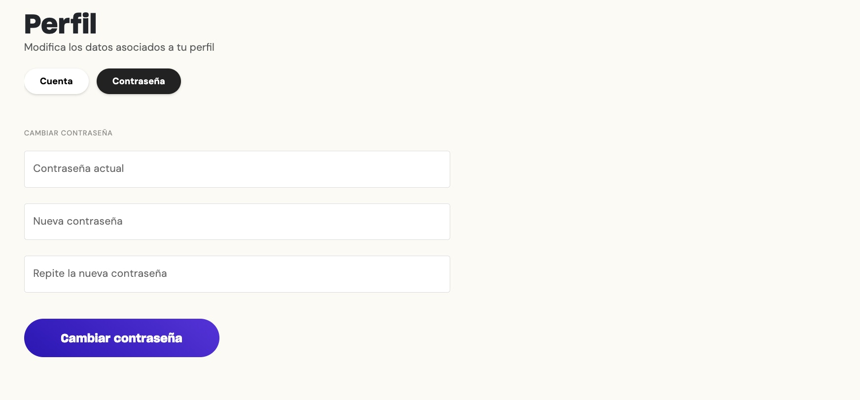Desde esta sección podrás modificar tu contraseña de acceso a Banktrack.