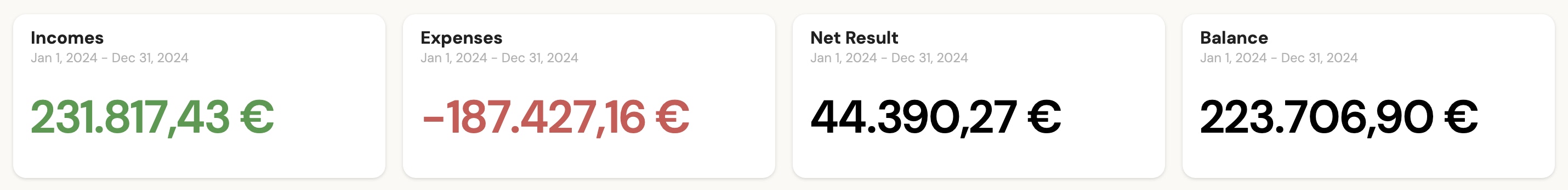 - KPI: an indicator to display a highlighted variable, which you can choose from: Income, Expenses, Net Result or Balance at the end of the period.