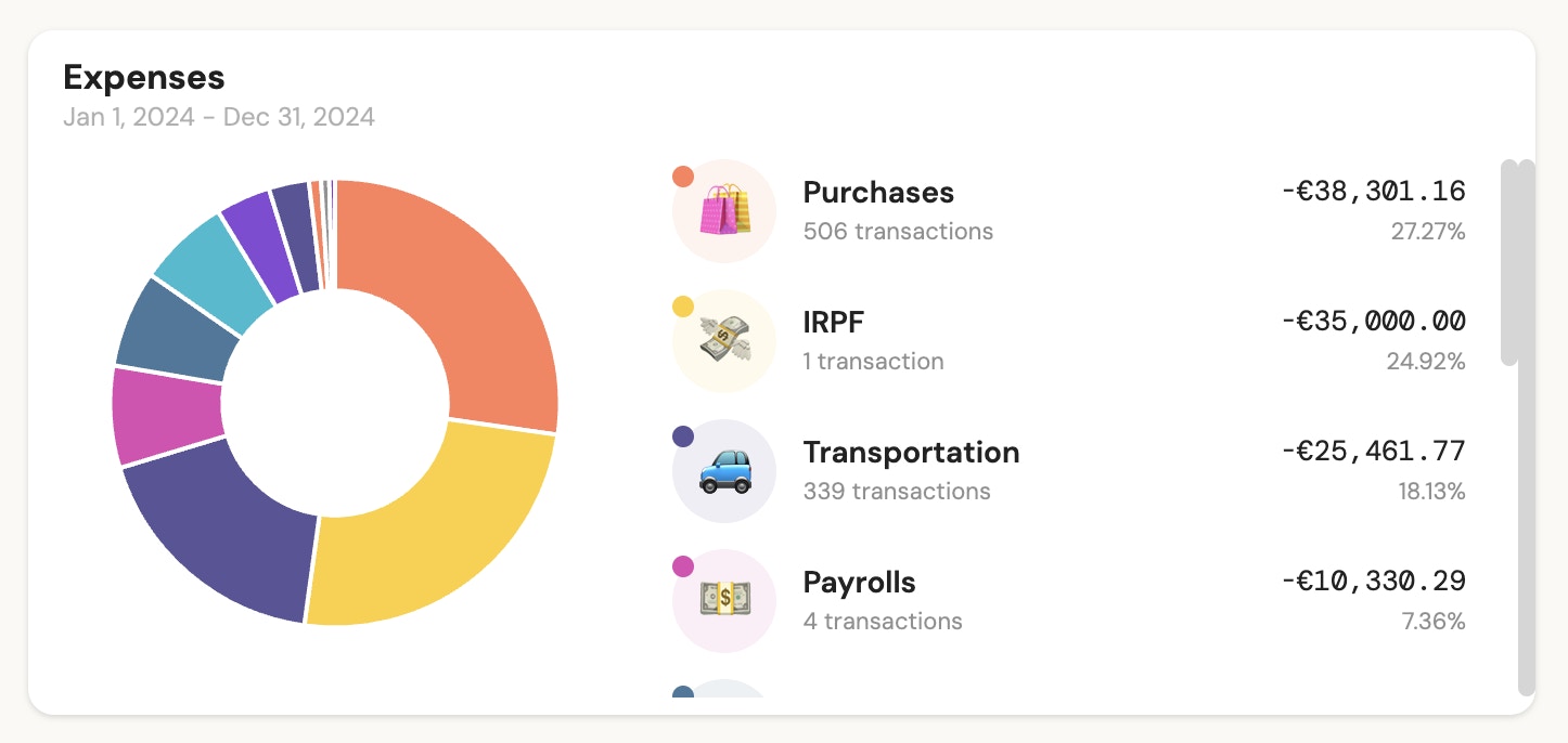 4 - Donut chart: To visualize the largest income or expenses grouped by category, date, bank connection, or banking product.