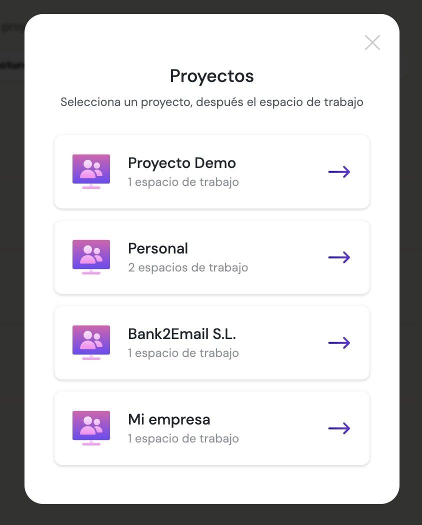 From a single account, you can access your different workspaces and projects without needing to create multiple accounts in Banktrack.
