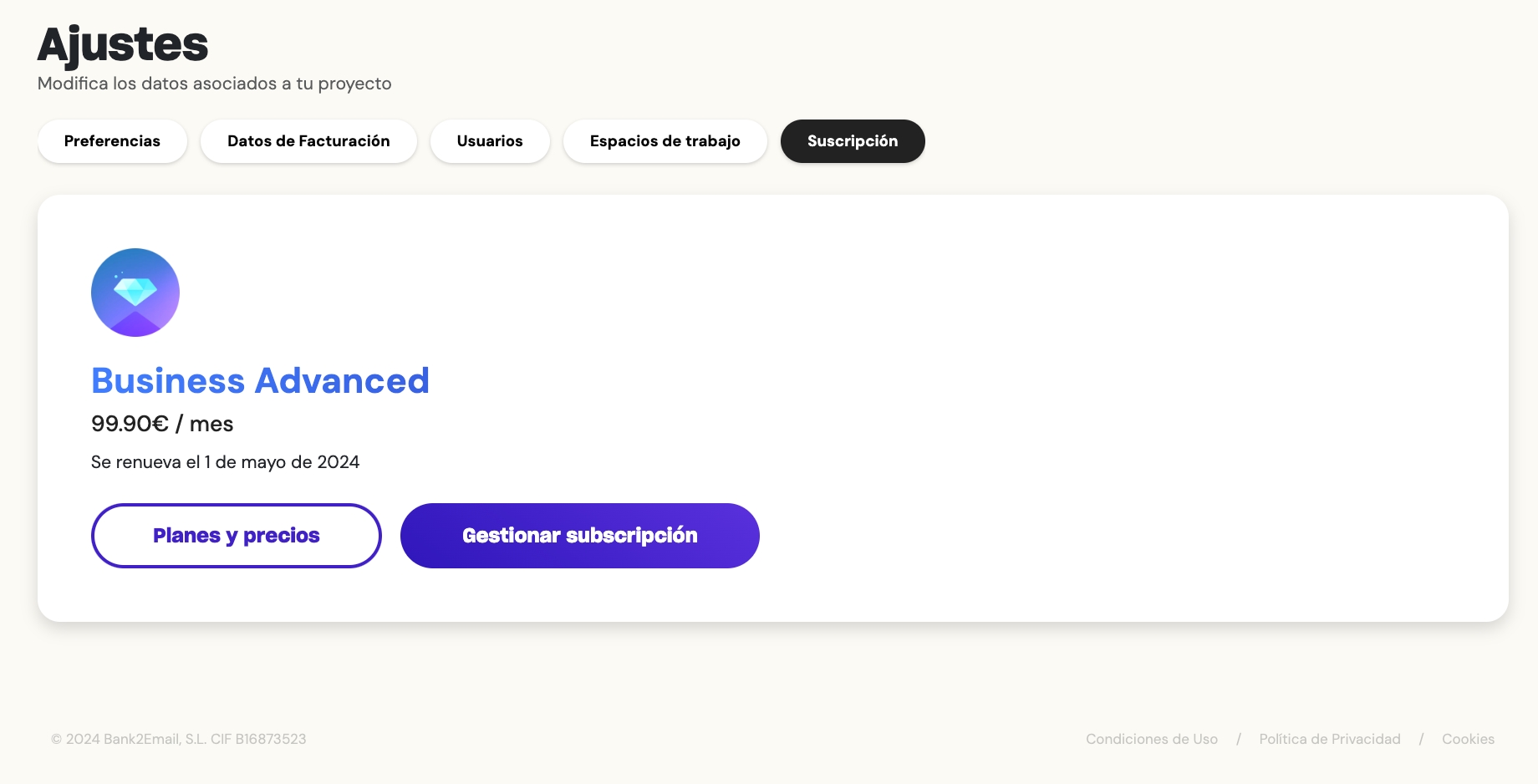 By clicking the Manage Subscription button, you will be directed to the Stripe panel (the platform we use for payment and billing) where you can modify your plan or download previous invoices.