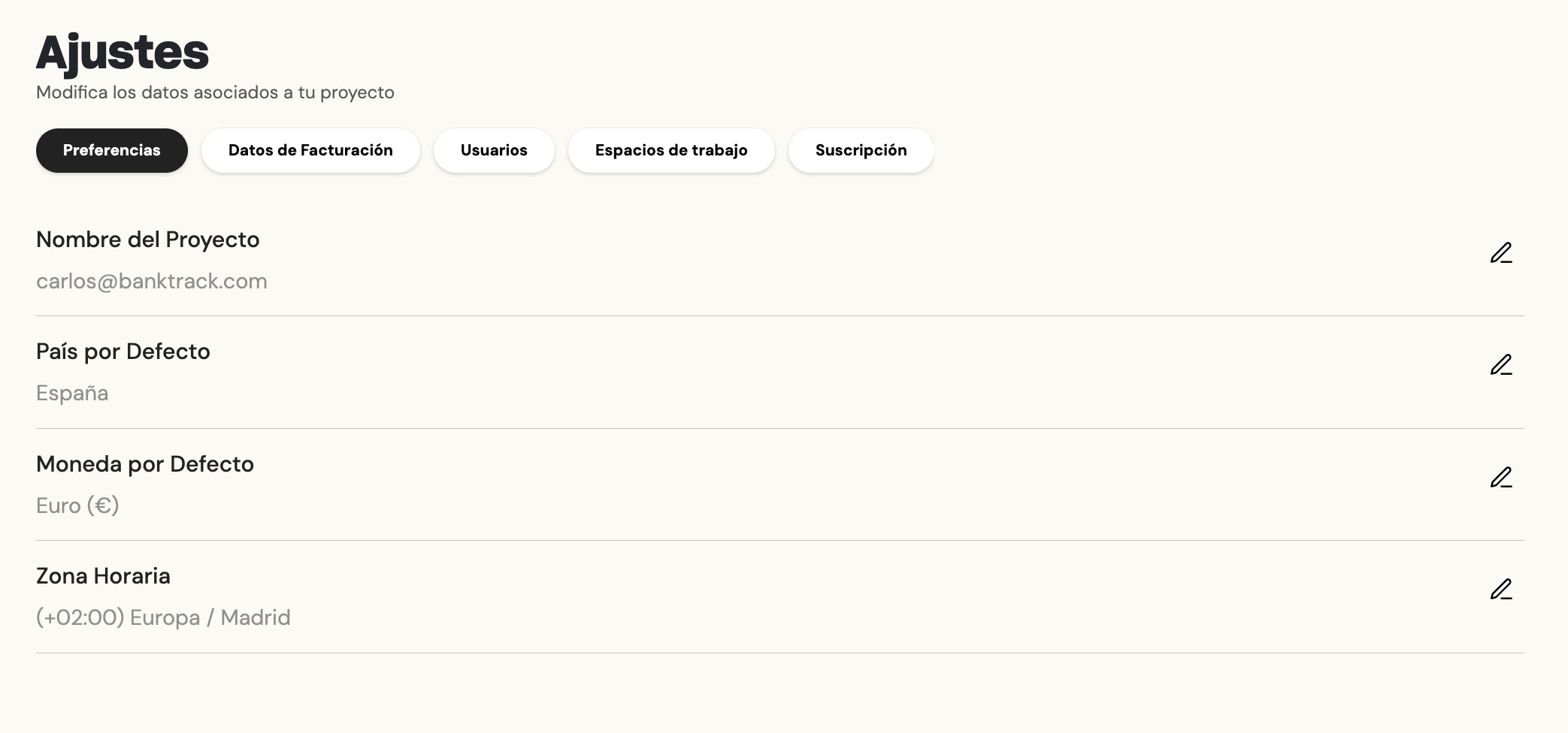 Configure your Banktrack account preferences.