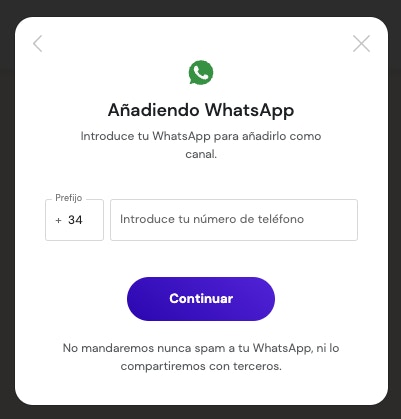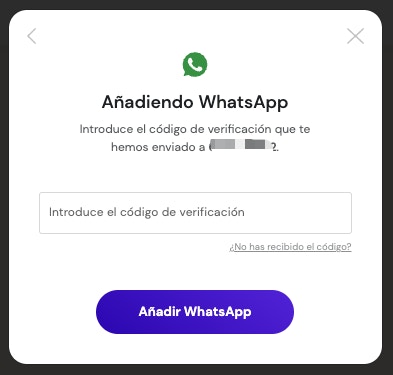 Recibirás un código en tu número de WhatsApp que debes introducir en la siguiente pantalla para validar que el número es correcto. Y tras esto, pulsar en Añadir WhatsApp para crear el canal.