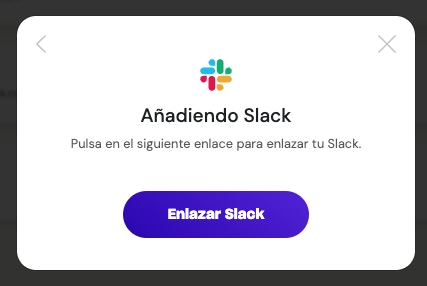 Pulsa en el botón "Enlazar Slack" y sigue los pasos indicados en la página de Slack.